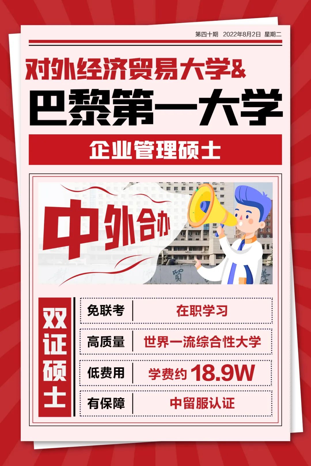 企业管理双证硕士是经中国教育部批准的,由对外经济贸易大学与巴黎第一大学共同推出的中外合作办学项目。本项目开设在外经济贸易大学中法国际工商管理学院下,旨在打造全方位、宽领域、多技能的综合型国际化人才。自2003年启动以来,迄今已有近700名毕业生。近几年来,国际学生人数逐步上升,使项目的国际化特色更为鲜明。